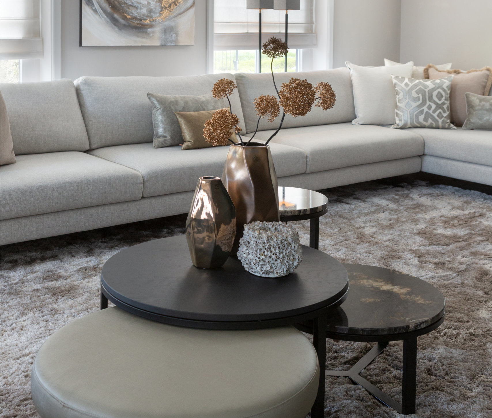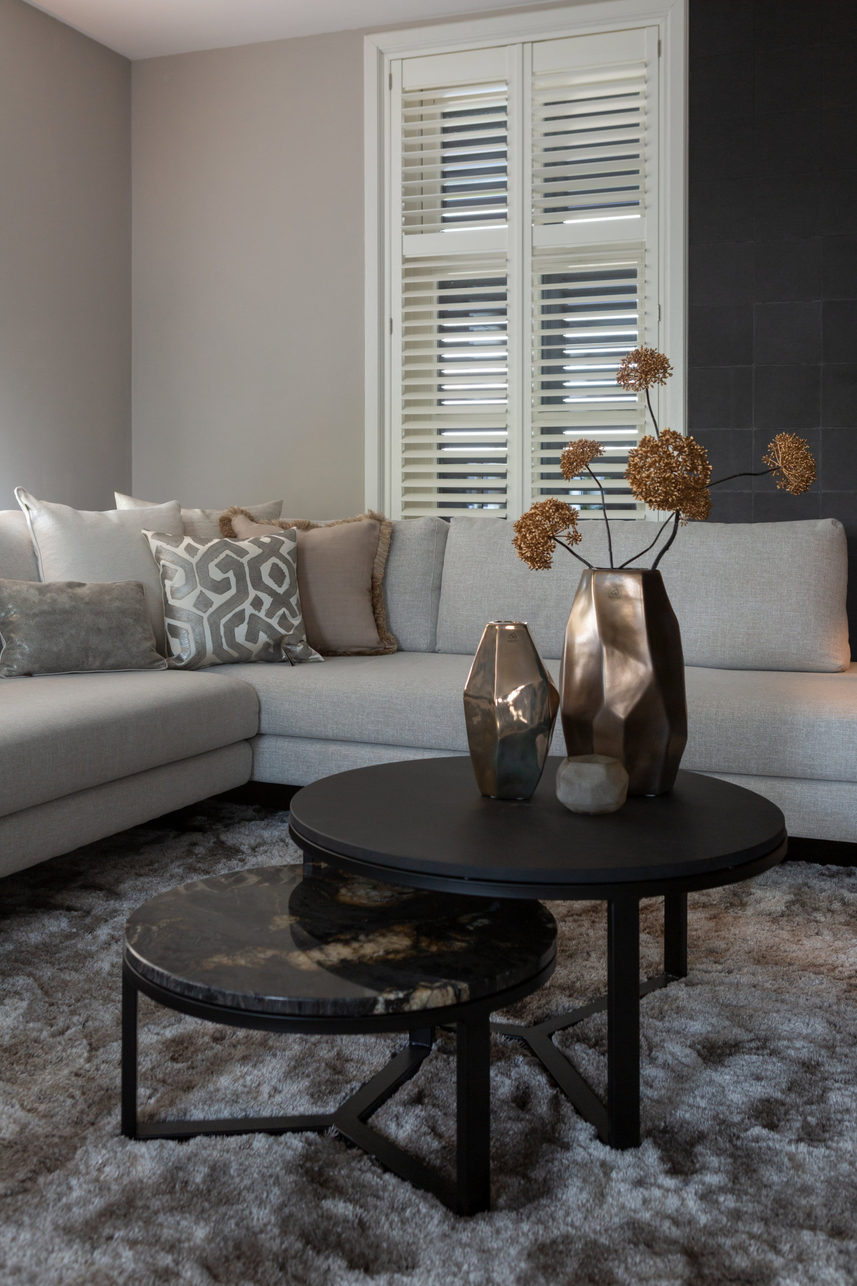 “De zachte opvolgende kleuren en het gebruik van verschillende materialen, zoals marmer, donker eikenhout, staal en de prachtigste stoffen, maakt dit interieur tijdloos en uniek.”
